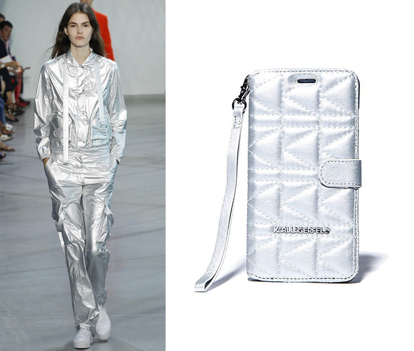 - Один из главных стилей, вдохновивших дизайнеров на летние коллекции стал футуризм - платья, шорты, жакеты и комбинезоны, напоминающие серебристые скафандры космических путешественников блистали (в буквальном смысле) во всех модных столицах мира. Если вам близок образ отрока во вселенной, то вам подойдет чехол стеганной серебристой кожи от фэшн-гуру Карла Лагерфельда.