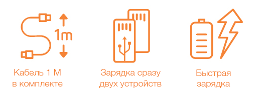 - Быстрая зарядка сразу двух устройств