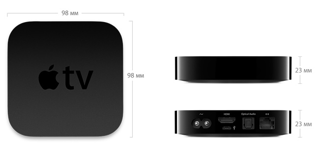 Apple TV - отличное устройство для беспроводной синхронизации различных Apple-устройств, находящихся в одной сети Wi-Fi. Устройство оснащено довольно мощным мобильным процессором Apple A5. Оптический аудио-разъем позволит подключить к Apple TV высококачественные аудио-системы.