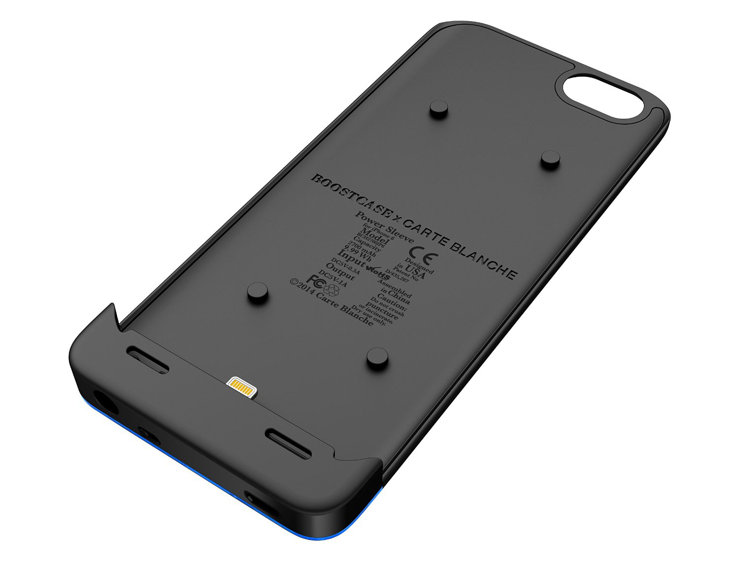 Емкость съёмного аккумулятора 2700 mAh, этого вполне хватит чтобы зарядить iPhone 6. Сам аккумулятор заряжается от компьютера или сетевого адаптора с помощью Micro USB-кабеля. Для удобства использования на аккумуляторе предусмотрен тумблер включения/выключения и LED-индикация уровня оставшегося заряда.