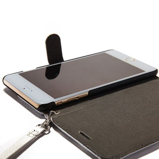 Чехол застегивается на небольшой клапан с магнитом, который можно легко расстегнуть, если вам нужно быстро ответить на звонок или просмотреть сообщение. На обложке также предусмотрена специальная прорезь над слуховым динамикм, поэтому разговор можно вести и с закрытм чехлом. В комлекте также есть отстегивающийся кожаный ремешок, с помощью которого можно повесить аксессар на руку, он также уменьшает вероятность случайно выронить телефон.