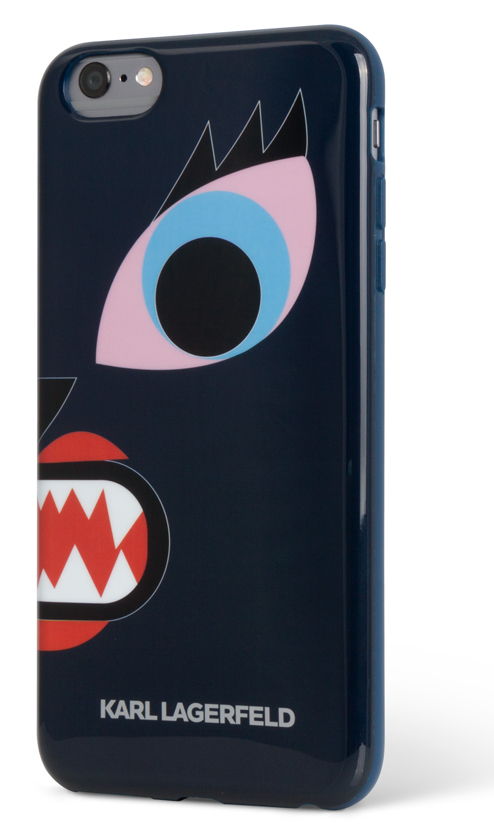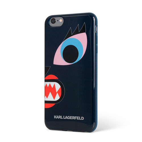 Дизайнерский чехол-накладка для iPhone 6 или iPhone 6S. Дизайн аксессуара разработан в модного доме знаменитого Карла Лагерфельда - главного дизайнера Chanel и настоящей модной иконы. Остроумный принт с мультяшной кошкой делает этот чехол ярким и даже немного дерзким аксессуаром.