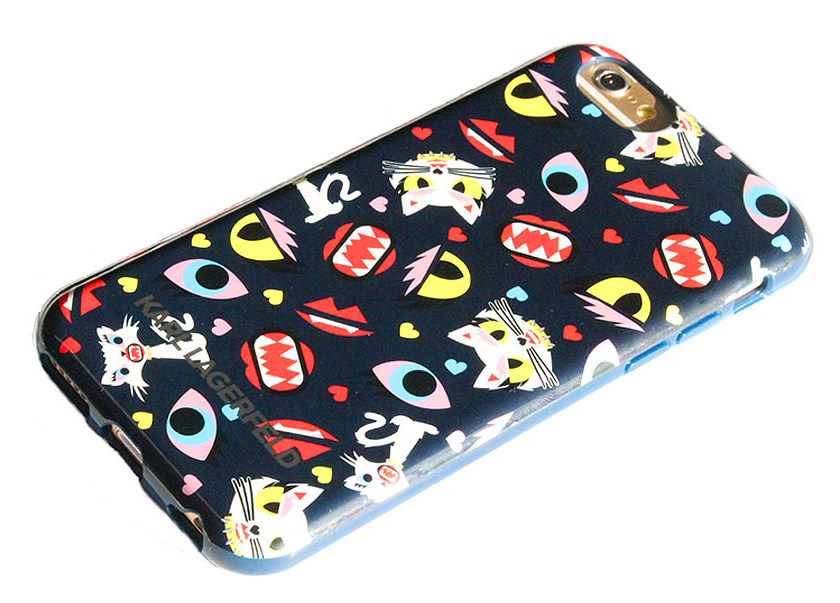 Дизайн чехла разработан в модном доме легендарного Карла Лагерфельда, одного из самых известных людей в мире моды, настоящей живой легенды. Принт с забаными разноцветными кошечками приведет в восторг не только модников, но и всех кто неравнодушен к хорошему дизайну, а также, конечно, любителей кошек.