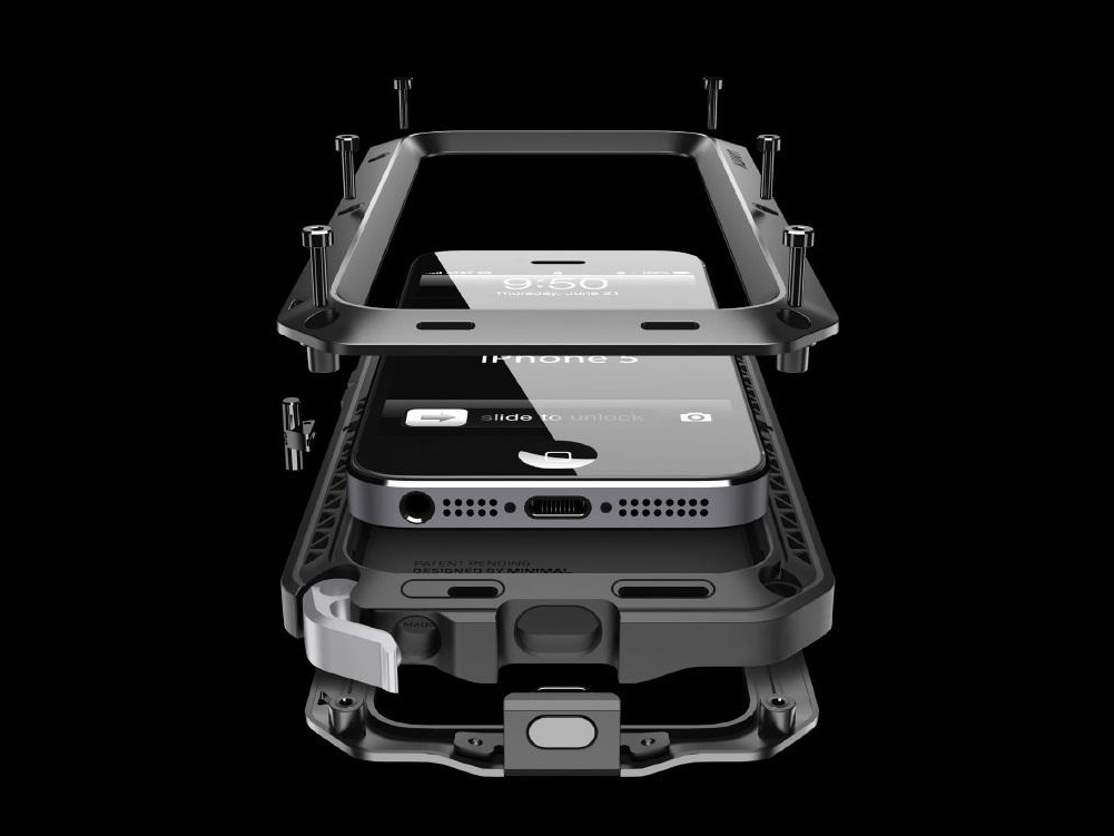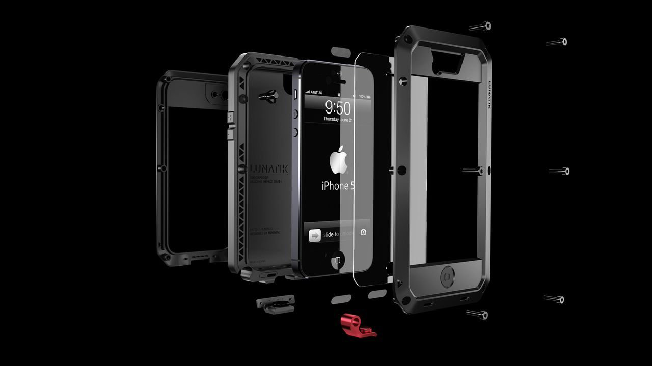 Аксессуар состоит из нескольких деталей: пластиковой задней панели с отверстием для задней камеры, вспышки и микрофона; средней части из особого полиуретана, обеспечивающего амортизацию при падениях и ударах, а также плотное прилегание чехла к корпуса смартфона и защиту от влаги; и передней части с закаленным защитным стеклом Corning Gorilla Glass и накладкой на кнопку Home. В средней части также предусмотрены специальные вставки под кнопки, переключатель вибро, заглушки для раъема Lightning и наушников.