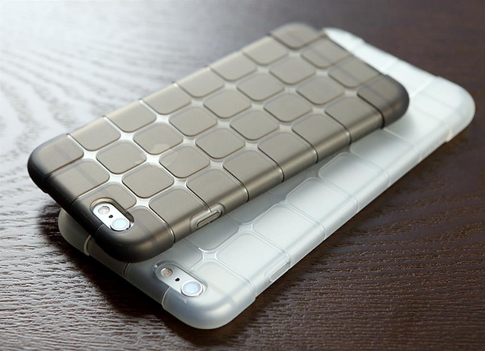 Необычный дизайн создает впечатление, что чехол состоит из нескольких квадратов, соединённых лишь небольшими перемычками, на самом же деле чехол цельный, но толщина пластика в разных его частях различается - от ультра-тонкого до усиленного на углах.