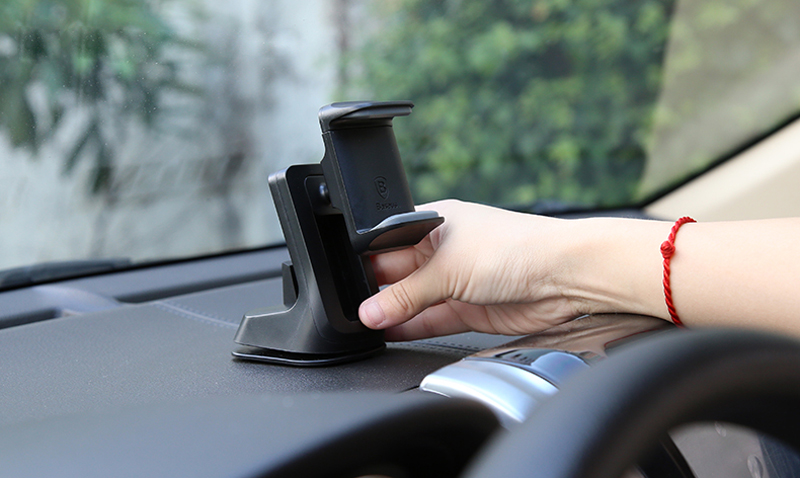 Этот ультра-компактный держатель практически не занимает места в салоне автомобиля и, при этом, прекрасно справляется со своими функциями. Он изготовлен из современного прочного пластика, а его конструкция позволяет закреплять в нем смартфоны в чехлах, с подключенным к зарядному устройству кабелем.