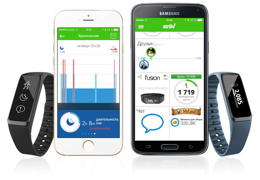 Полный функционал часов Striiv доступен при синхронизации их смартфоном на iOS (не ниже 7.1) или Android (не ниже 4.3), приложение Striive доступно бесплатно на App Store и Google Play. Вы также можете синхронизировать часы с одним из популярный фитнес-приложений, например MyFitnessPal или RunKepper, а еще вы может публиковать свои достижения напрямую на Facebook.