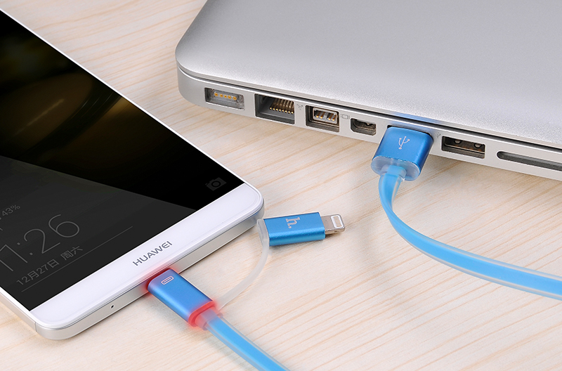 Кабель подходит для зарядк от сетевых адапторов, внешних аккумуляторов, автомобильных зарядных устройств, а также компьютеров и ноутбуков. Для удобства пользователя в разъемах встроена LED-индикация заряда - при зарядке устройства подсветка красная, а когда гаджет заряжен полностью - синяя.