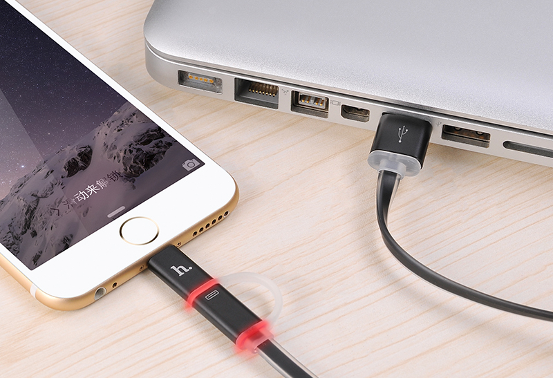 Кабель для iPhone/ iPad HOCO Lightning-USB + MicroUSB Data Jelly Metal 120cм