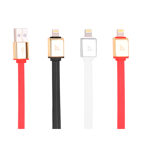 Кабель c металлическими коннекторами для смартфонов, планшетов и плееров Apple с разъемом Lightning. Прочный изностойкий плоский провод, на нем не образуется заломов и коннектор из стали никогда не потрескается. Он прекрасно подойдет для использования в офисе, дома или в автомобиле.