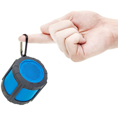 Компактная колонка с Bluetooth. Такой небольшой динамик очень удобно носить с собой, он мало весит и занимает мало места в сумке или рюкзаке, к том же в комплекте есть специальный карабин, позволяющий закрепить колонку на рюкзаке или одежде.