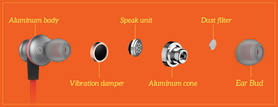 Наушники соединены между собой небольшим кабелем, на котором находится гарнитура. Она позволяет регулировать громкость, переключать треки, ставить воспроизведение на паузу и отвечать на звонки при использовании со смартфоном. Также в гарнитуре находится разъем micro-usb, через который наушники заряжаются полностью за 2,5 часа (кабель есть в комплекте). Полного заряда хватает на 4 часа воспроизведения музыки или 6 часов разговора, в неактивном состоянии заряда хвататет на 200 часов. Уровень заряда отображается на дисплее в меню Bluetooth-подключений. Работают наушники на расстоянии до 10 м от устройства.