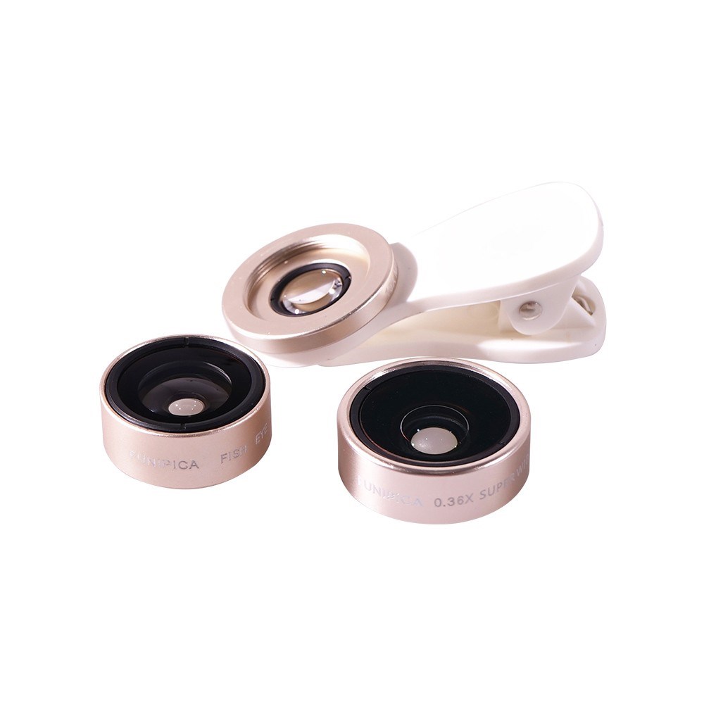 Объектив-линза Lieqi набор 3 в 1: Fisheye, Макро объектив, широкоугольная Цвет: Розовое золото (F-516)