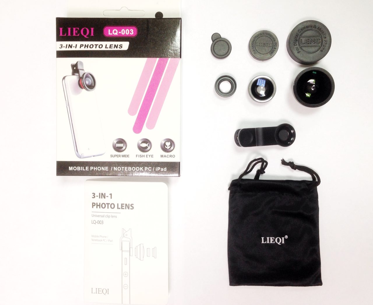 Объектив-линза Lieqi набор 3 в 1: Fisheye, Макро объектив,широкоугольная линза Цвет: Чёрный (LQ-003) - это способ расширения возможностей Вашего айфона. Благодаря трем основным опциям, устройство вмещает в кадр гораздо больше объектов, чем при обычной фотосъемке.