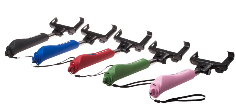 Модельный ряд Selfiestick состоит из 5 цветовых решений: Черный, Синий, Красный, Зеленый и Розовый. В комплектации имеется удобная сумочка для хранения и переноса монопода, USB кабель для зарядки устройства и надежный держатель для телефона!