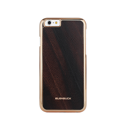 Стильный чехол-накладка с металлизированной рамкой и вставкой из натуральной кожи для iPhone 6 или iPhone 6S. Кожаная вставка имеется текстуру экзотической кожи игуаны, элегантные цветовые сочетания тонко дополнят образ модника, предпочитающего роскошь и вечную классику. Из декоративных элементов на накладке есть только небольшой металлический логотип Bushback в нижней части. Сам бренд Bushback родом из Калифорнии, где и разрабатывается дизайн их аксессуаров.