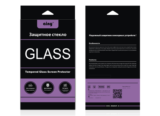 Изготавливаются универсальные защитные стекла Ainy Tempered Glass 0.33мм для дисплеев диагональю 4 дюйма из японского стекла специального назначения Asahi. Производственный процесс проходит в несколько этапов, каждый из которых подлежит строгому контролю качества. В первую очередь протектор обрезают по заданным размерам, затем обрабатывают края и полируют всю поверхность. Далее заготовки проходят закаливание при высоких температурах, что позволяет обеспечить готовому изделию твердость в 9Н и высокую прочность.